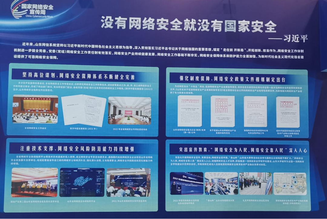 2022年国家网络安全宣传周山东省活动延续了“网络安全为人民,网络安全靠人民”主题,组织召开网络安全论坛、网络安全博览会、“泰山杯”网络安全大赛、系列网络安全“主题日”和网络安全进基层活动,不断有助于网络安全宣传接地气、聚人气,让网络安全理念深入人心,共同营造安全用网,安全上网的良好舆论氛围。